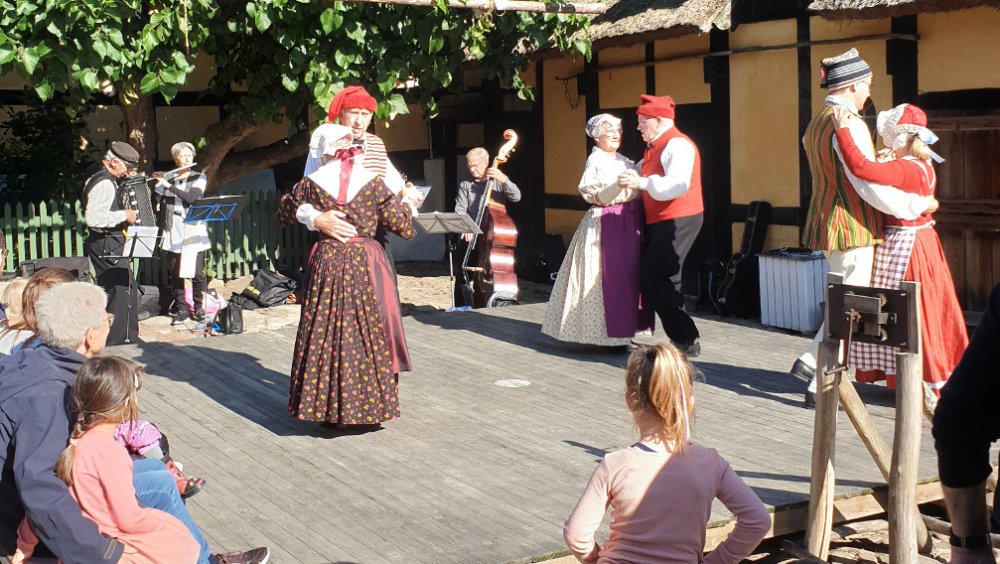 Folk og Fæ spillede i to omgange. Den første gang var til dans, kl. 11:30, og anden gang var kl. 14:00 ... anden gang var det en blanding af dansmelodier og sange.