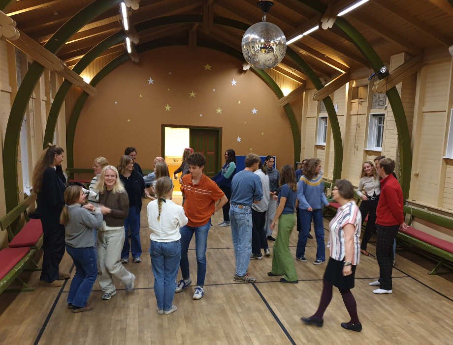 Vi havde kun spillet og lavet dans få gange på højskolen siden Lillian og Axel holdt op som forstanderpar. Men nu blev vi inviteret derind igen, d. 21. oktober. Alma instruerede i begynderdanse, og højskolens elever kastede sig ind i dem.