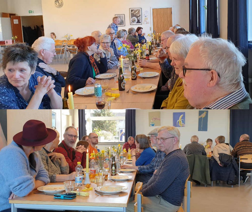 Fredag d. 4 april var der fællesspisning i Vestermaries borgerforeningshus. Folk og Fæ og Bornholms Folkedansere hjalp med underholding - begynderdans før aftensmad og baldans (Lancier turene 1 - 5) efter maden.