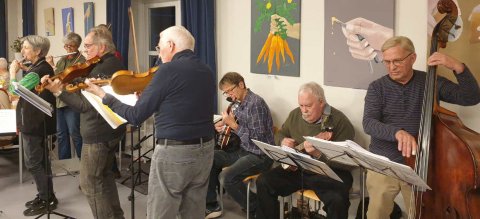 Folk og Fæ mødte talstærkt op. Ikke alle spillemænd er synlige [...]i dette billede men man se dem i videoerne.