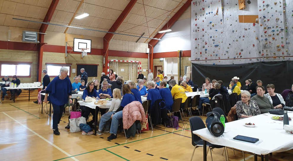 ![]() DGI gav kaffe og kage. | ![]() Baldansere giver en opvisning. | ![]() Publikumet bestod hovedsageligt af deltagerne. |