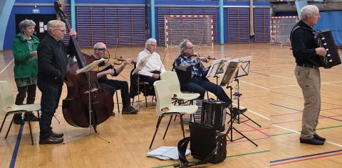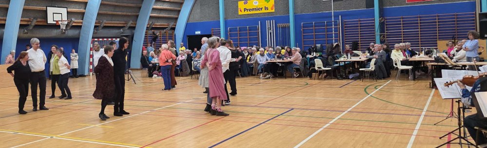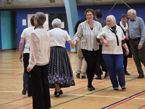 Mange fra Bornholms Folkedansere danser i den nye hold på Hodda i Rønne, [...]og de var med til at give en opvisning på dansedagen i Hasle..