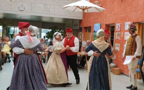 Plejehjemmets beboere nød og sang til "Gamle Toza" og den dans og sang blev vores ekstra nummer efter opfordring fra personalet.