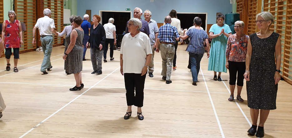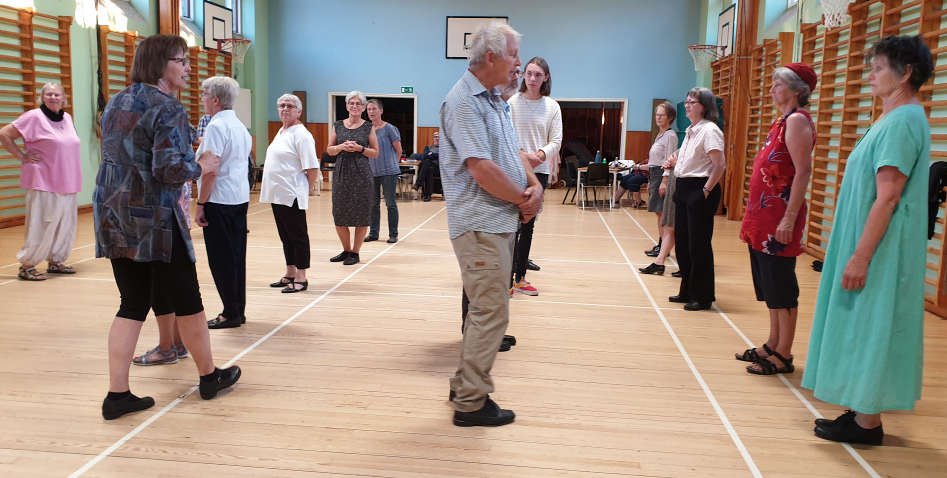 Der blev instrueret i og danset Bornholmske danse og man fik lidt af baggrunden til dansen og musikken at vide fra Kisser. Alma instruerede dansene.