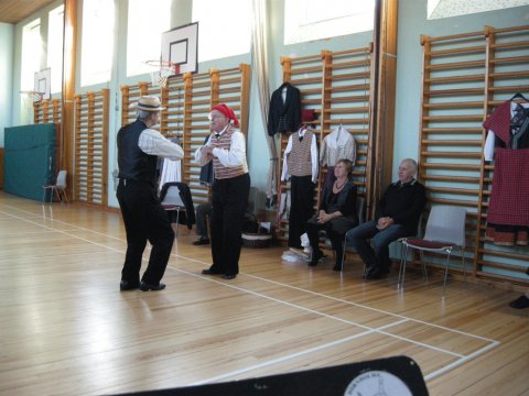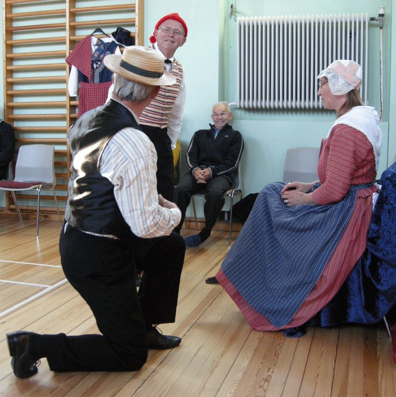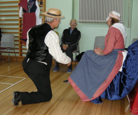 Samme dag da der var dragt fremvisning af folkedragter blev der opført et lille skuespil. Handlingen var lidt i stil med "Klods Hans " her var det bare en prins fra østen der stak af med prinsessen. Det der ses på disse billeder, er degnedansen