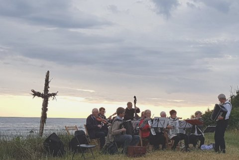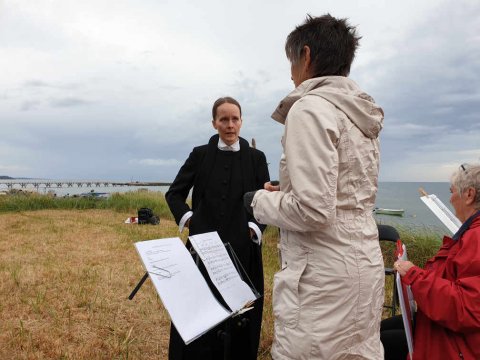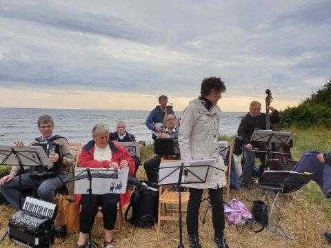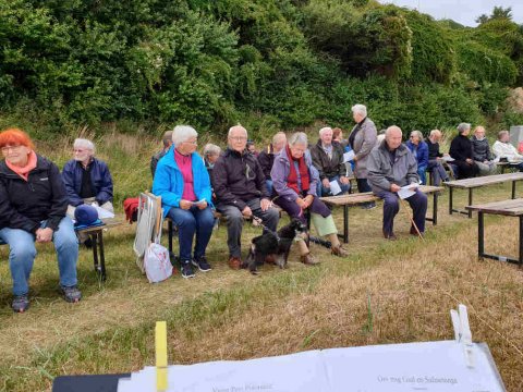 Onsdag d. 10 juli 2019 spillede Folk og Fæ til en åbenluftsgudstjeneste på Arnager havn. Vejret havde været elendigt den dag lige op til cirka 1 time før vi skulle starte.