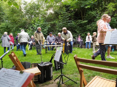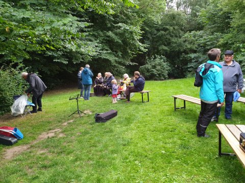 Ligesom sidste år regnede det før og efter gudstjenesten, men der var opholdsvejr mens den stod på.