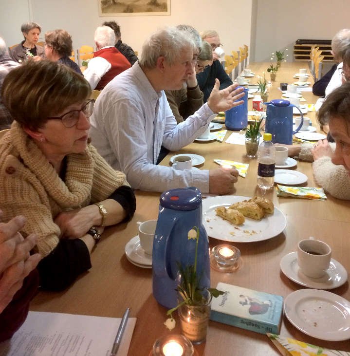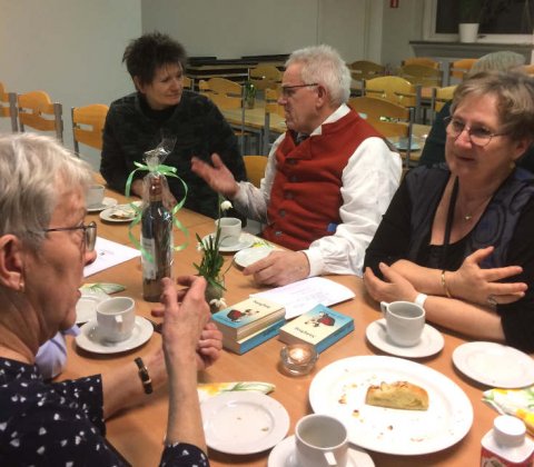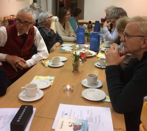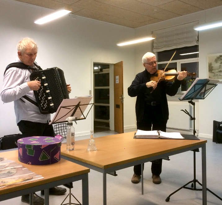 Pausen. | Der var fællessang som sædvanlig og her er et par der akkompagnerer sangen. | ![]() Der var udskiftning i bestyrelsen. Udgående medlemmer fik en afskedsgave. Indgående medlemmer [...]fik taknemmelighed, (som desværre ikke kan drikkes.) Læs mere...↑ |