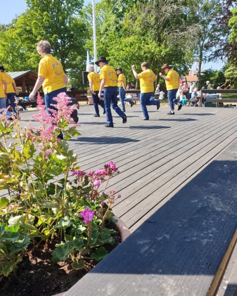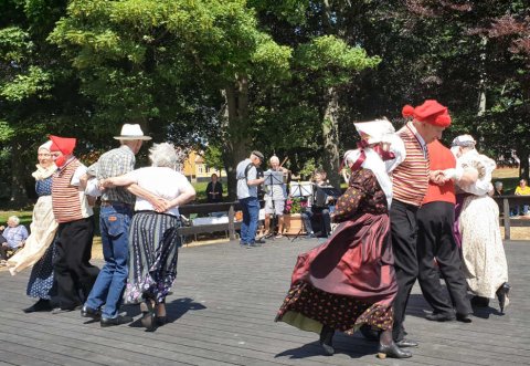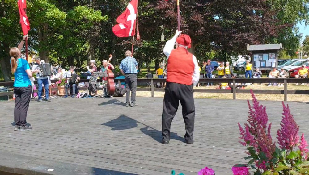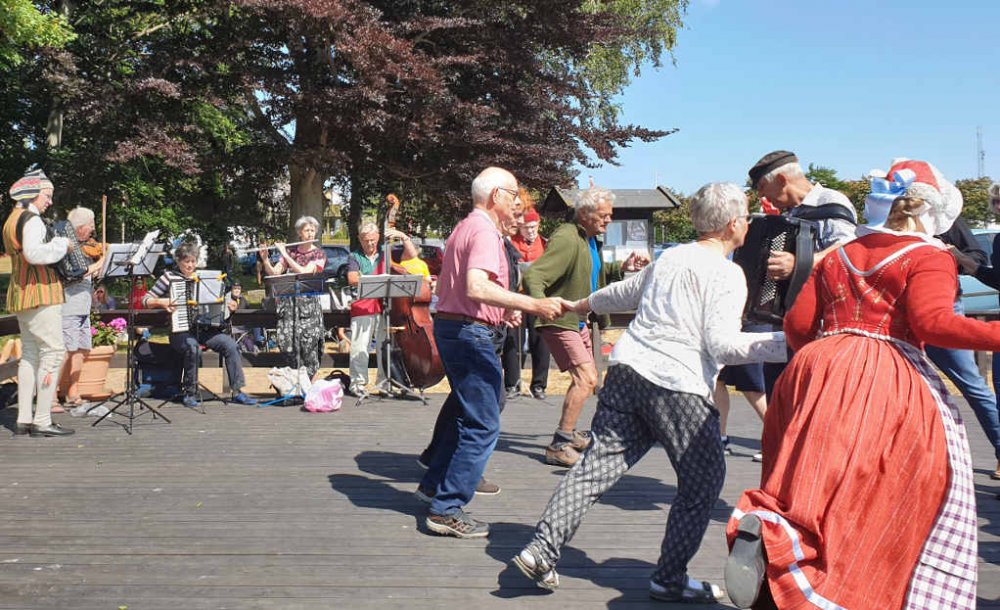 Åbningen af Hasle dansegulv d. 11. juni 2023. Vejret var flot dog blæsende. Det var en kortere program end normalt og varede cirka 2 timer.