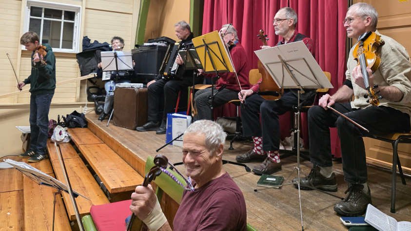 Henrik Larsen ledede dansen og Folk og Fæ spillede for. Der var æbleskiver og glögg takket være Bornholms Folkedansere.