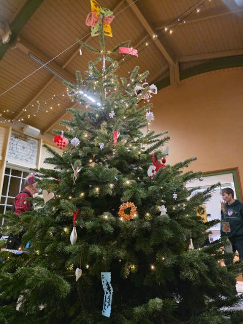 ![]() Æbleskiver og glögg i pausen | ![]() Henrik Larsen var danseleder. | ![]() Juletræet |