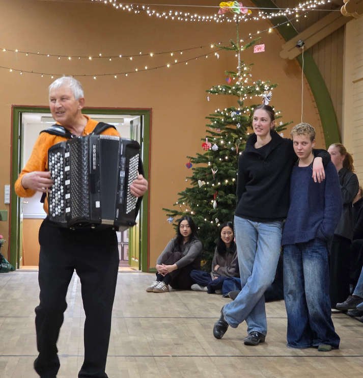 Bornholms Folkedansere inviterede medlemmer og Bornholms Højskolens elever til julestue d. 5. december 2025.