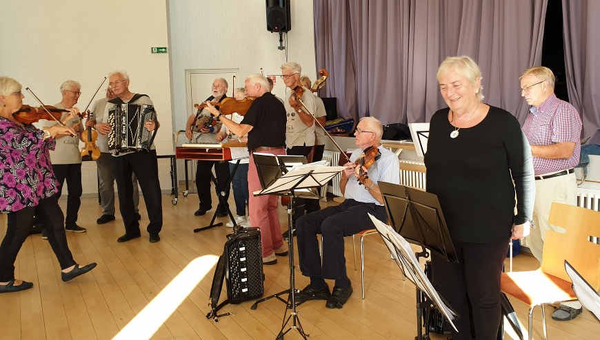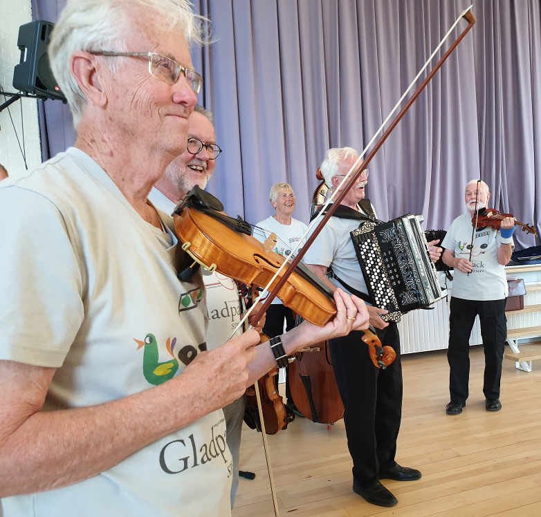 Gladpack Spelmän kan spille på mange forskellige instrumenter.