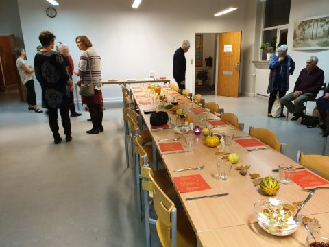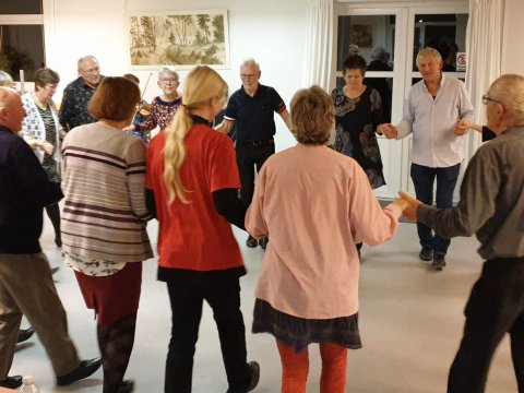 ![]() Lørdag aften var aftensmaden givet af Bornholms Folkedansere. Her står folk og [...]snakker mens de venter. Læs mere...↑ | ![]() Fælles sang lørdag aften. | ![]() Legestuen lørdag aften. | |||