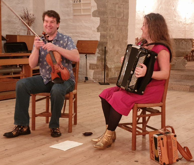 ![]() Jensen og Bugge gav en koncert i Aakirke fredag aften. | ![]() En af de sidste gæster ankommer til fredag aftens koncert med Jensen og Bugge. | ![]() Jensen og Bugge gav en workshop lørdag formiddag og eftermiddag. | |||