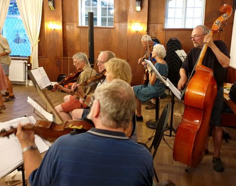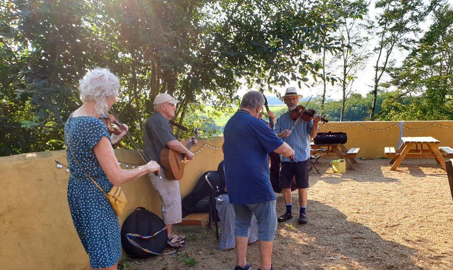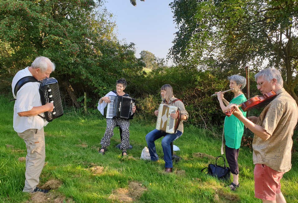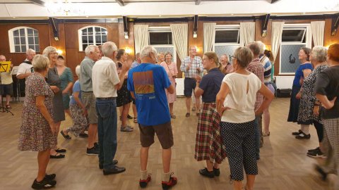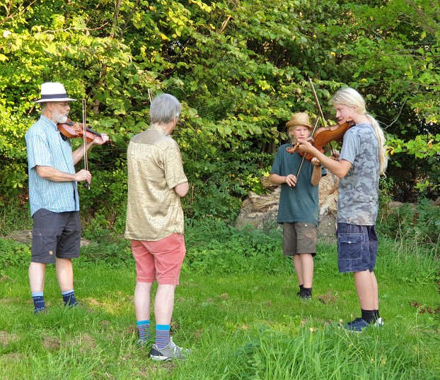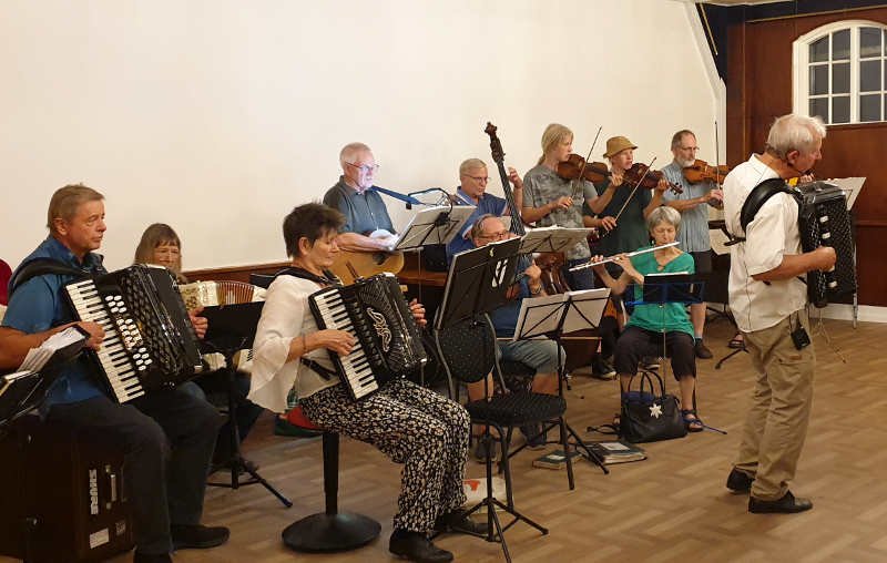 Først var der buskspil hvor alle musikere kunne spille hvad som helst hvor som helst, og så var der spisning af medbragt mad - udenfor og indenfor - og så var der bal hvor de 3 foreninger tog en tur hver på at instruere danse.