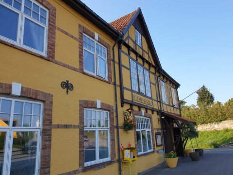 ![]() Selve Klemenske Kro hvor det hele foregik. | ![]() Buskspil gruppe oppe på terrassen. | ![]() Buskspil ved buskene/træerne. |