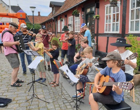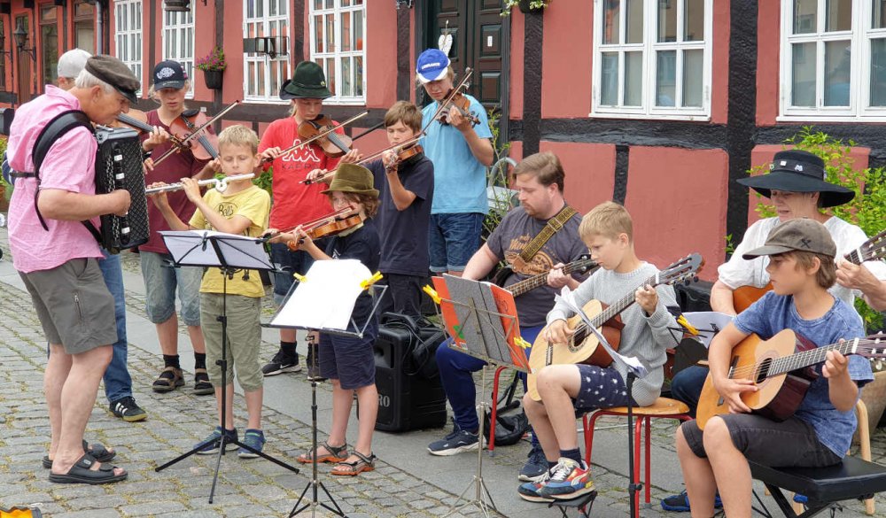 Mandag den 1. juli, på Åkirkebys Torv var der et"børneloppemarked" hvor børn kunne sælge deres ejendele. Der var en hoppeborg og mulighed for karettur, OG .... Folk of Fæs Ungdoms afdeling, plus 5 Folk og Fæ aspiranter, spillede løs fra kl 15:00.