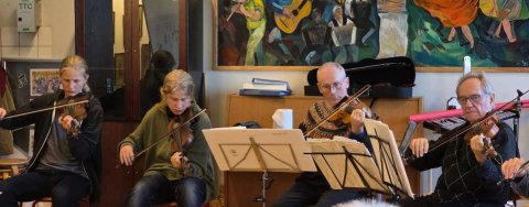 Lørdag d. 15. november var der en "orkesterdag" hvor vi øvede på kommende koncerter mere grundigt end kan gøres på en normal øveaften. Vi fik en lækker frokost og kaffe og kager undervejs. Der var en god stemning, især efter vi havde varmet op (musikalsk og socialt) og vi blev mere sikker med musikken.