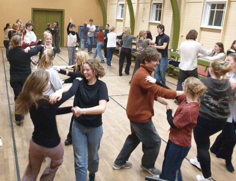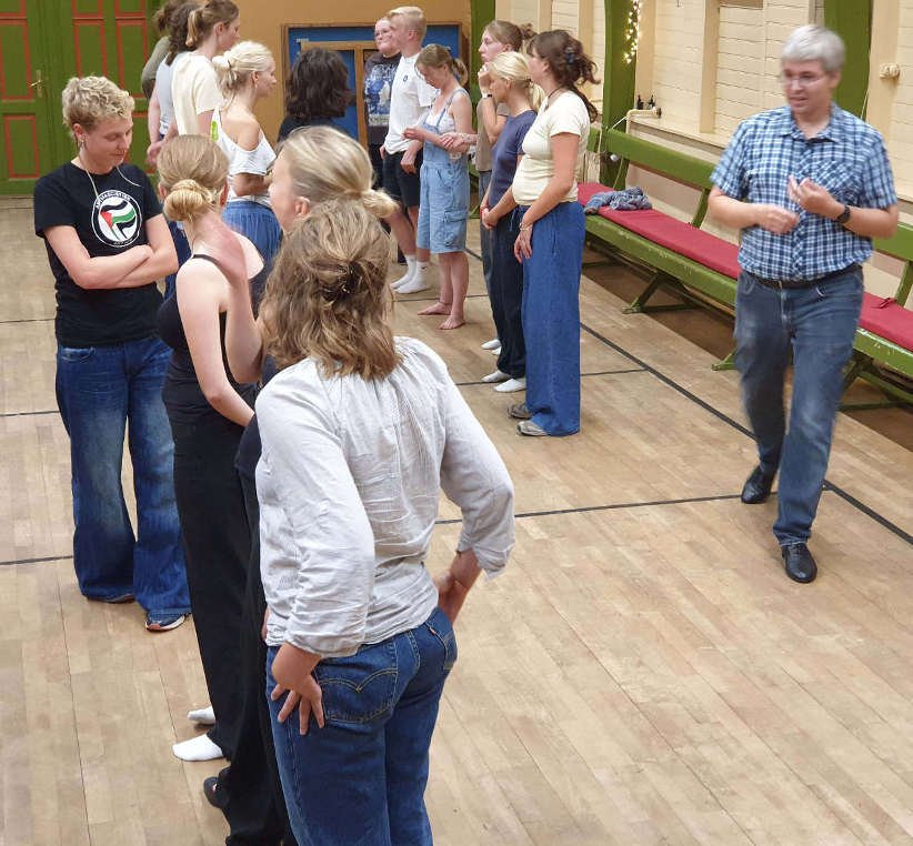 Igen, d. 27. august 2025, har Folk og Fæ spillet til dans for kursisterne på Bornholms Højskole.og igen var de delt i 2 hold som hver fik ca. 3/4 time dans og instruktion. Niels Anker instruerede det første hold og Asbjørn det andet.