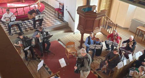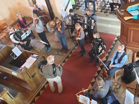 Folk og Fæ gav en koncert d. 10. april i Vestermaire Kirke. Strygerne fra Musiksolen medvirkede.