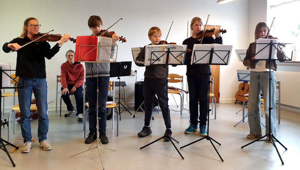 Strygere fra Bornholms Musikskole gav en koncert d. 8. april, 2022 i Foreningshuset, Vestermarie Skole. Folk og Fæ medvirkede.