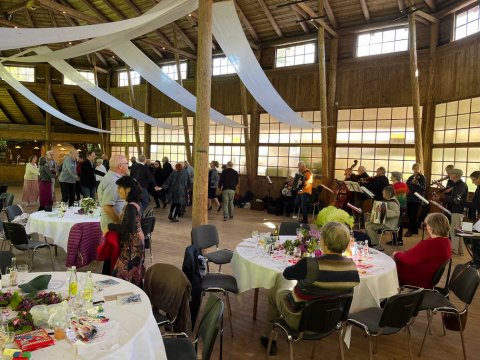 ![]() Der var en kølig dag men det blev varmere som tiden gik, isæ [...]r hvis man var med til at danse. Læs mere...↑ | ![]() Danserne blev instueret af Lisbeth. Folk og Fæ spillede. | ![]() Her ses Folk og Fæ medlemmer i gang. |