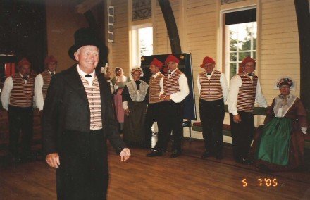 På dansedagen havde vi oven i købet den glæde, at vores indstilling [...]af Erling Jensen til lederprisen, blev efterkommet. Det var en dejlig overraskelse. Det blev bemærket, at Erling har instrueret i folkedans m.m. i 50 år! Her er Erling på Højskolen i stâstojed