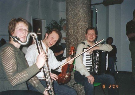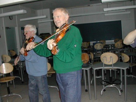 ![]() Vores første spillemandskursus! Anja Præst, Jesper Winther og Jørgen Dickmeiss var [...]instruktører på Østre Skole i Rønne februar 2004. Læs mere...↑ | ![]() | ![]() Poul Clausen og Erling |