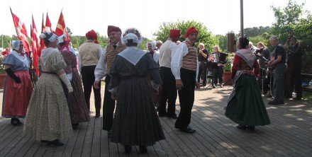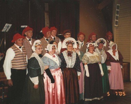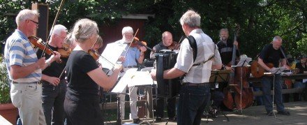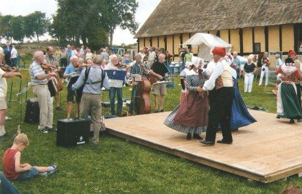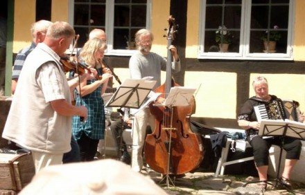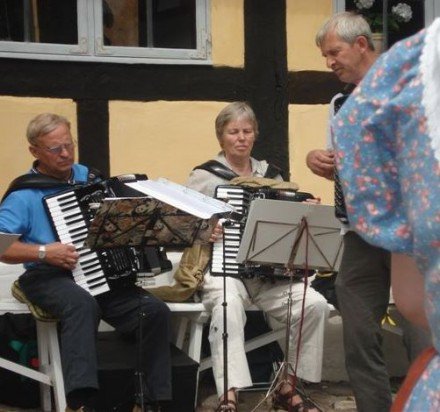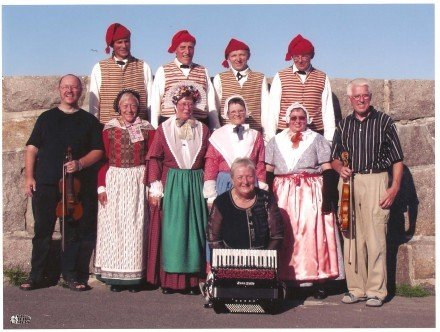 Her er vi tre spillemænd sammen med otte af vores folkedansere. Billedet blev [...]taget i Allinge efter en opvisning for turister