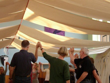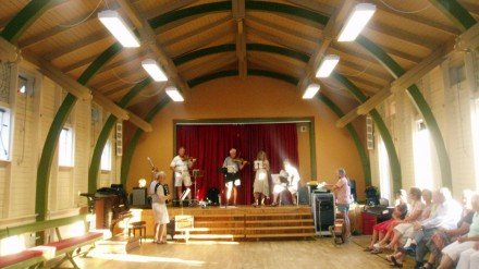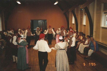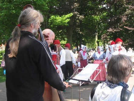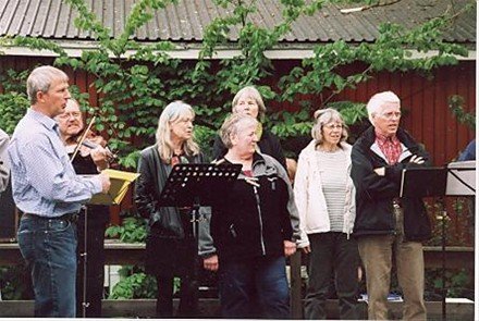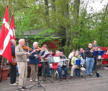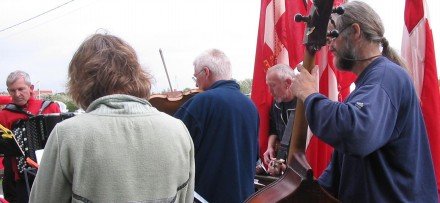 Åbning af Hasle Dansebane 2005. Det regnede. Så nogle af os lod instrumenterne ligge i [...]kassen, og så sang vi i stedet for til dansen